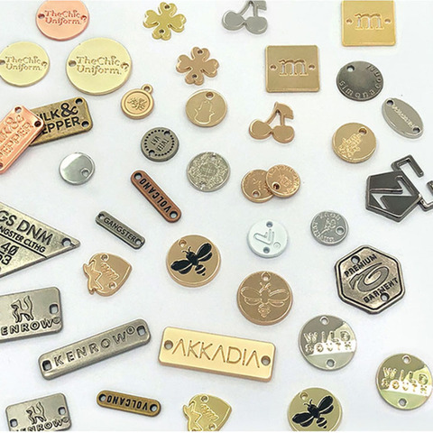 תוויות מתכת מותאמות אישית תוויות מתכת תוויות אספקה לוגו עבור שקיות בגדים